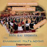 Την Παρασκευή 8 Αυγούστου θα πραγματοποιηθεί εκδήλωση παραδοσιακών χορών στην Κεντρική Πλατεία της Δεσκάτης με τη συμμετοχή 6 χορευτικών ομάδων μετά από πρόσκληση του Εξωραϊστικού Μορφωτικού Ομίλου Δεσκάτης. Θα συμμετέχουν: - Ε. Μ. Ο. Δ. - Σύλλογος Γρεβενιωτών Κοζάνης "Ο Αιμιλιανός" - Λαογραφική και Αρχαιολογική Εταιρεία Ελασσόνας - Πολιτιστικός Σύλλογος Αμυγδαλιών Γρεβενών - Τμήμα παραδοσιακών χορών Δήμου Γρεβενών -...