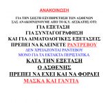 Υ.Γ Για την διεξαγωγή της αιμοδοσίας θα ληφθούν όλα τα απαραίτητα μέτρα προστασίας των εθελοντών αιμοδοτών. Για την αποφυγή συνωστισμού παρακαλούμε τους αιμοδότες αν είναι εφικτό να κλείνουν ραντεβού στο τηλ. 6986255864